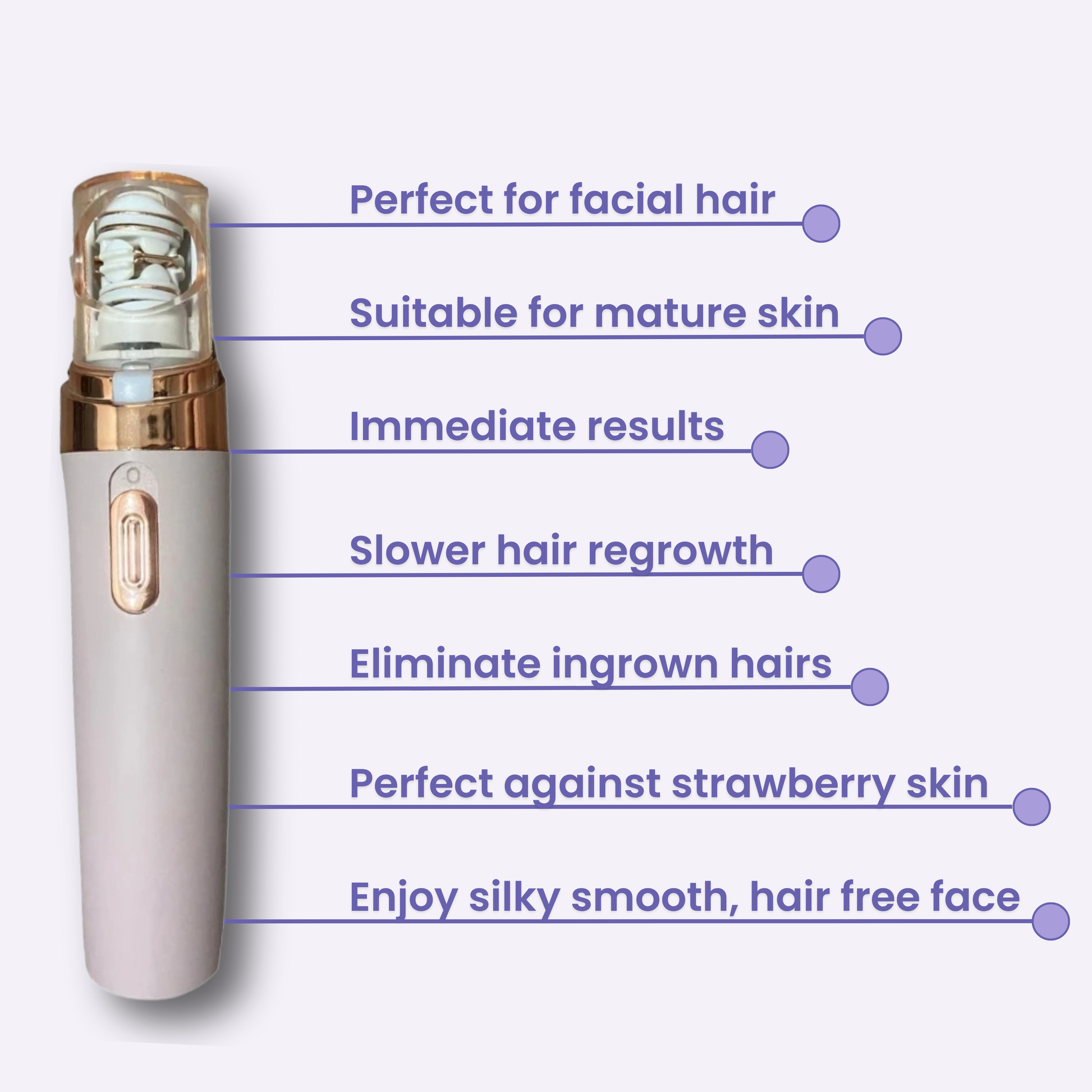 Its gentle blades remove hair without irritation, redness, or cuts, making it perfect for sensitive and mature skin.