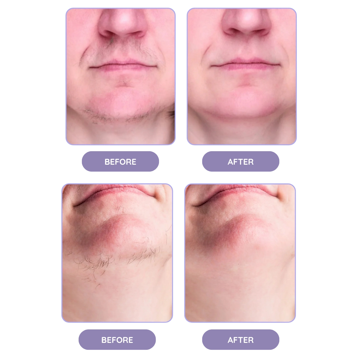 Unlike waxing or traditional razors, K-Glow removes facial hair safely and smoothly without pulling, pain, or irritation.